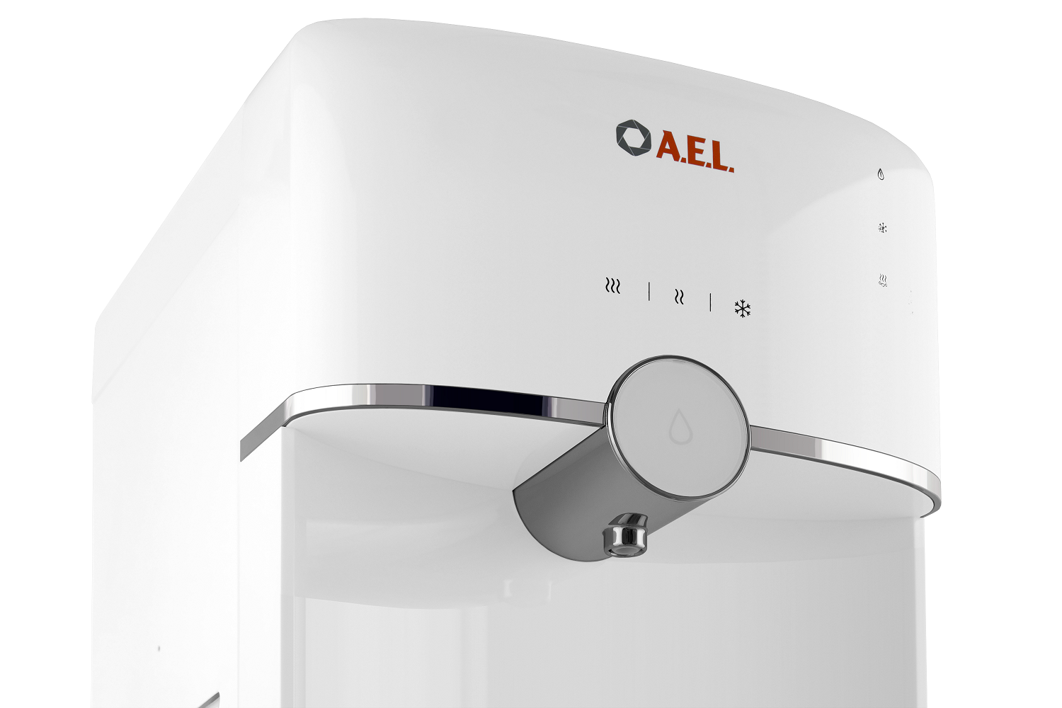 Полностью сенсорная панель управления. Подача и выбор воды осуществляется путем легкого прикосновения на панель управления. Например, для того чтобы налить холодную воду в стакан необходимо сначала нажать сенсорную клавишу холодной воды, затем на клавишу с каплей (при нажатии клавиша «капля» будет подсвечиваться). Для того чтобы остановить поток холодной воды из крана, просто нажмите сенсорную клавишу «капля» повторно.