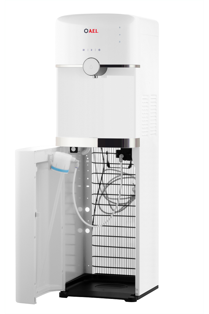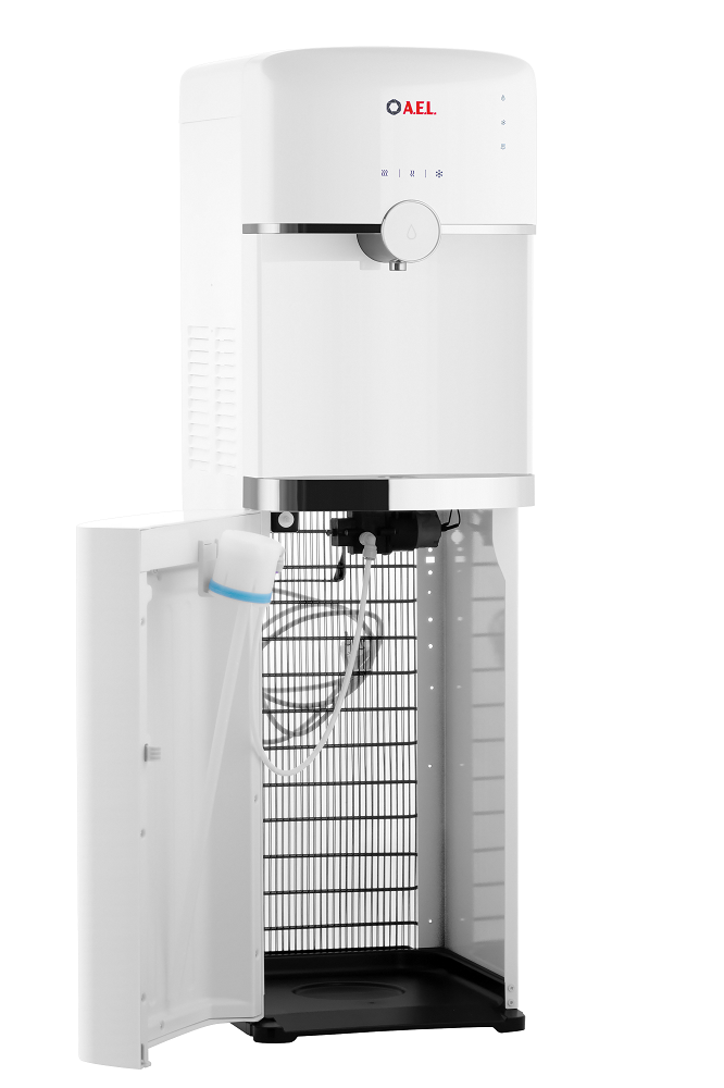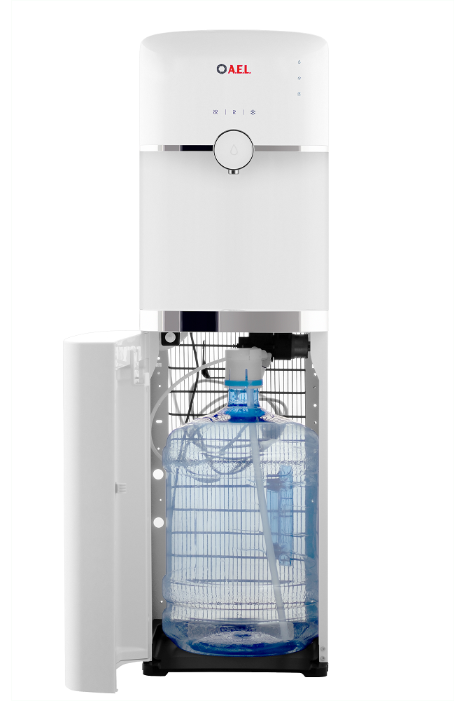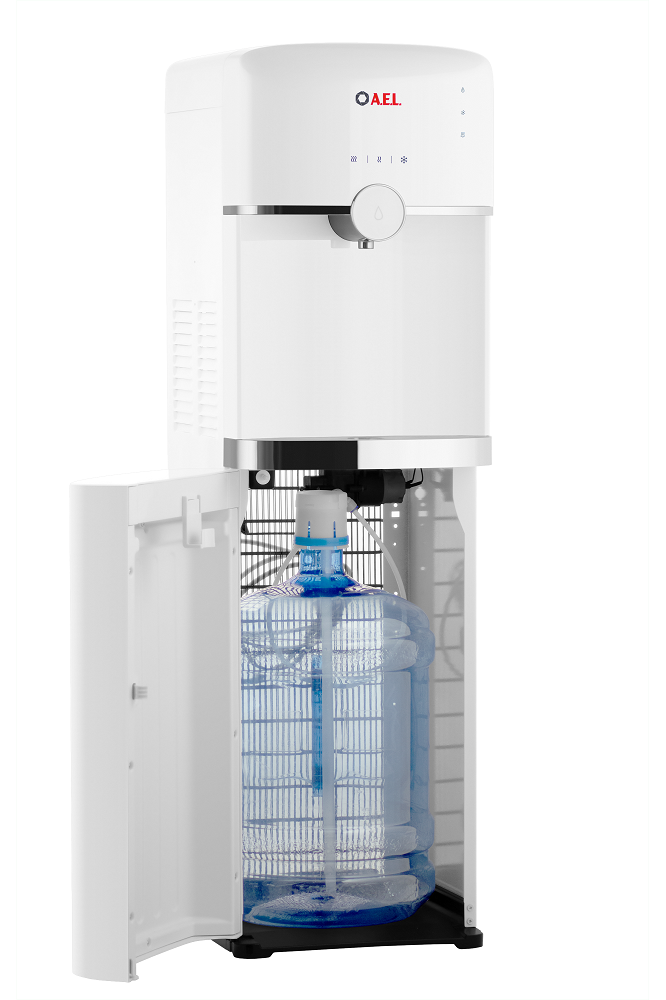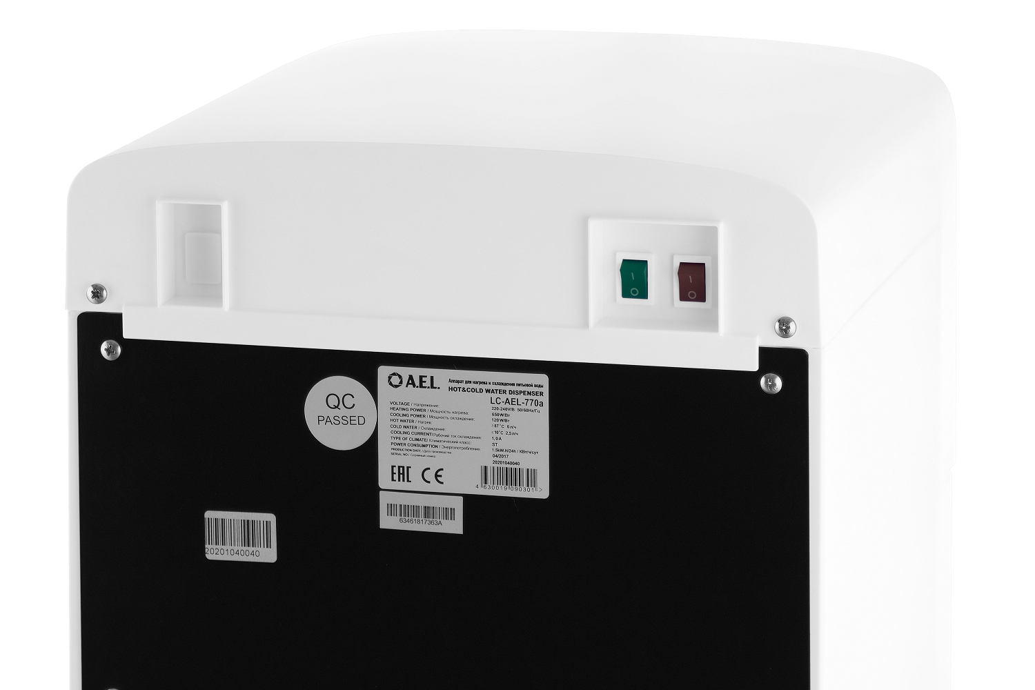 Кулер для воды AEL LC-AEL-770a (АЕЛ ЛЦ-АЕЛ-770а белый) — аппарат с нижней загрузкой бутыли, нагревом и компрессорным охлаждением.
