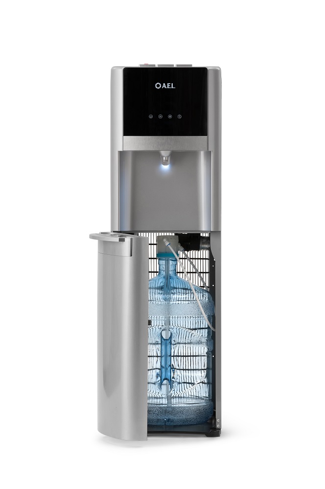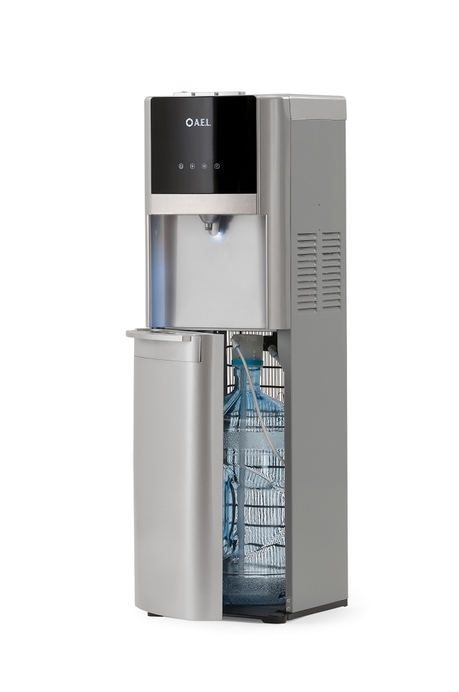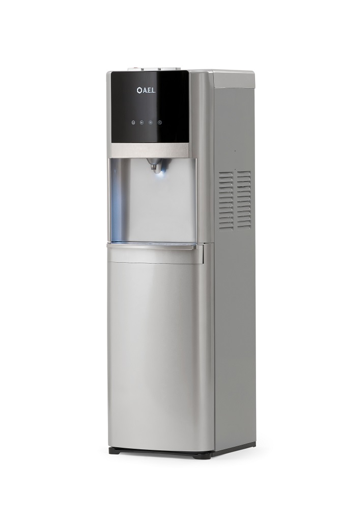 Кулер для воды AEL LC-AEL-809a silver — аппарат с нижней загрузкой бутыли, нагревом и компрессорным охлаждением.