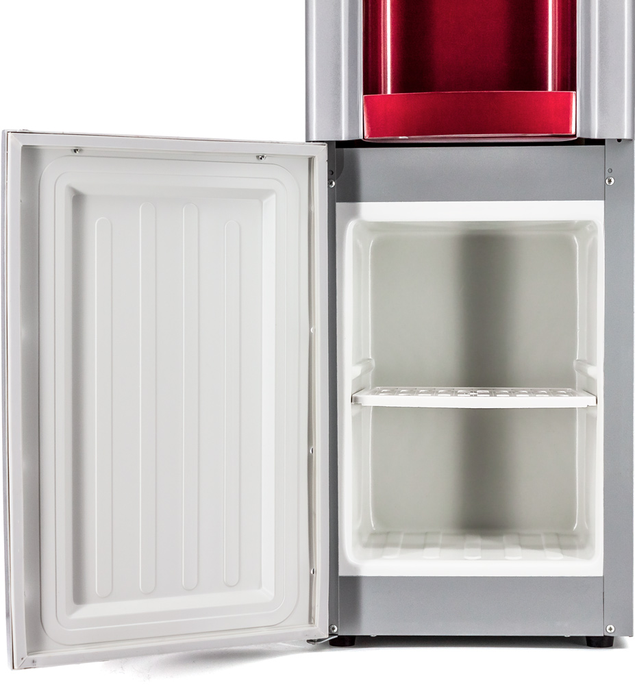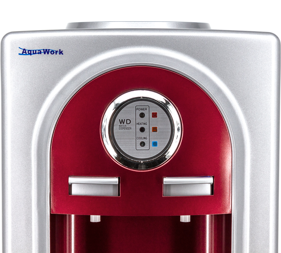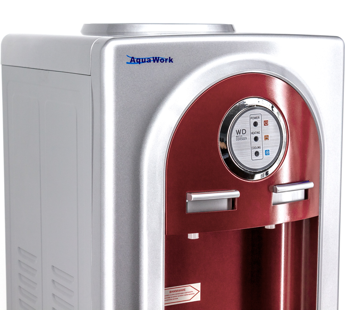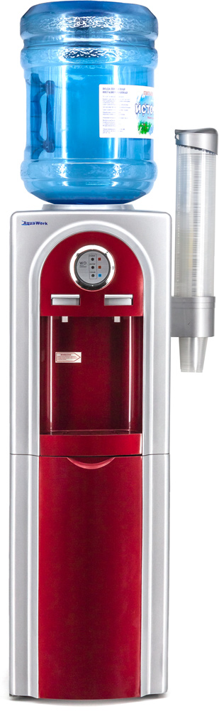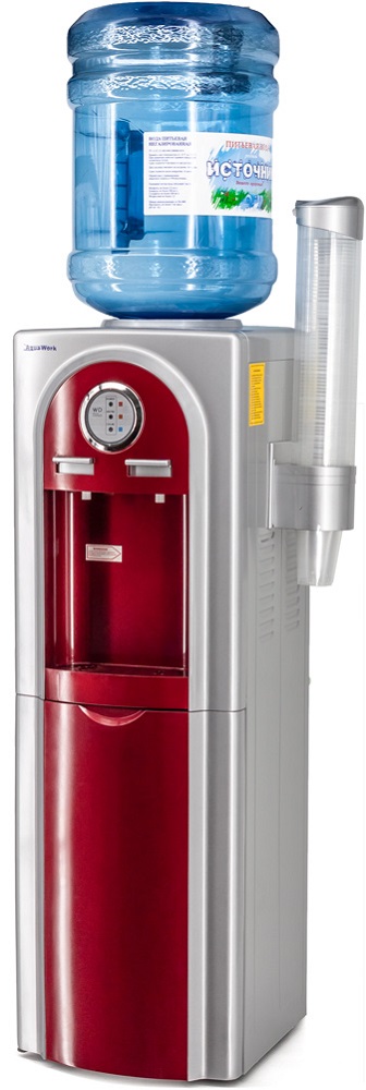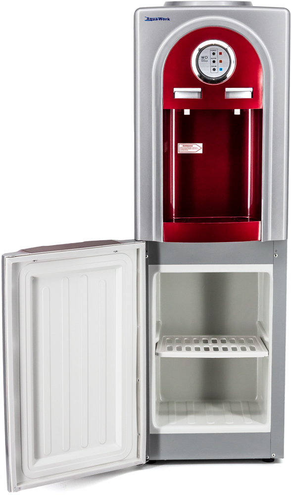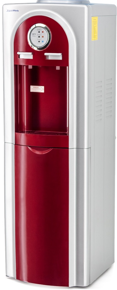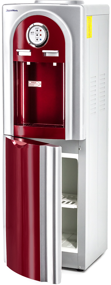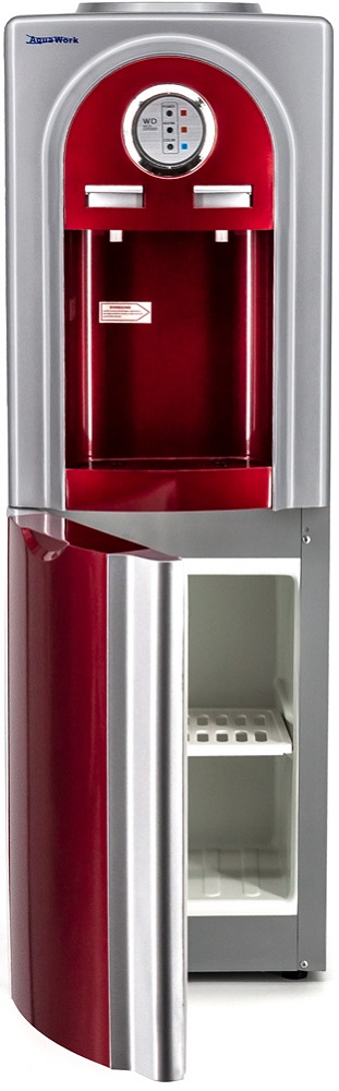 Кулер для воды Aqua Work 5-VB красный — напольный кулер с нагревом, электронной системой охлаждения и небольшим встроенным шкафчиком.