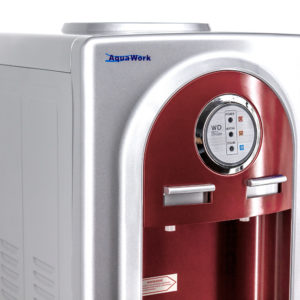 Кулер для воды Aqua Work 5-VB красный — напольный кулер с нагревом, электронной системой охлаждения и небольшим встроенным шкафчиком.