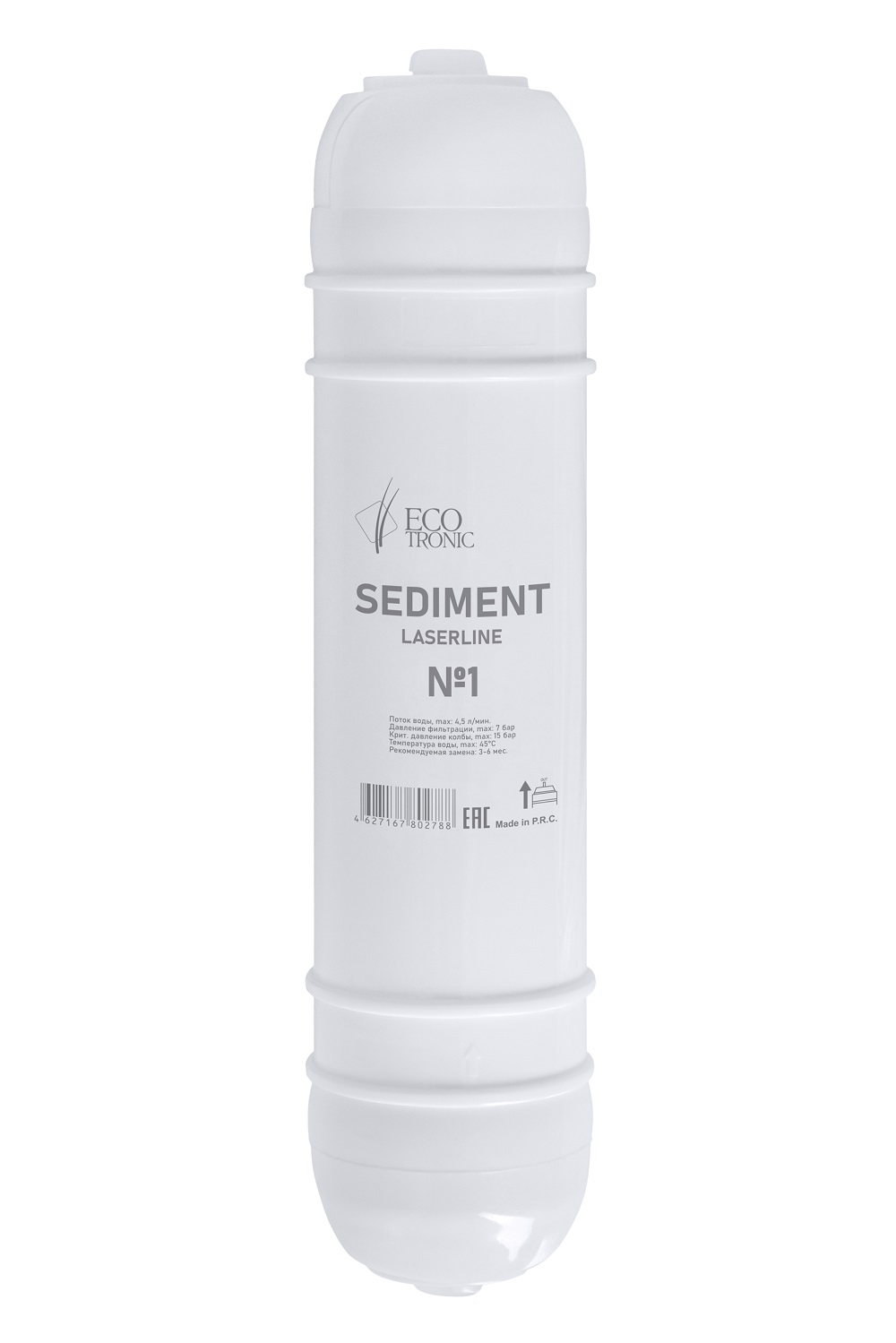 Фильтр Ecotronic Laserline 12″ I-тип Sediment — Осадочный фильтр предварительной грубой очистки. Удаляет крупные механические примеси (взвеси, песок) размером свыше 5 микрон, защищая предфильтр и мембрану.