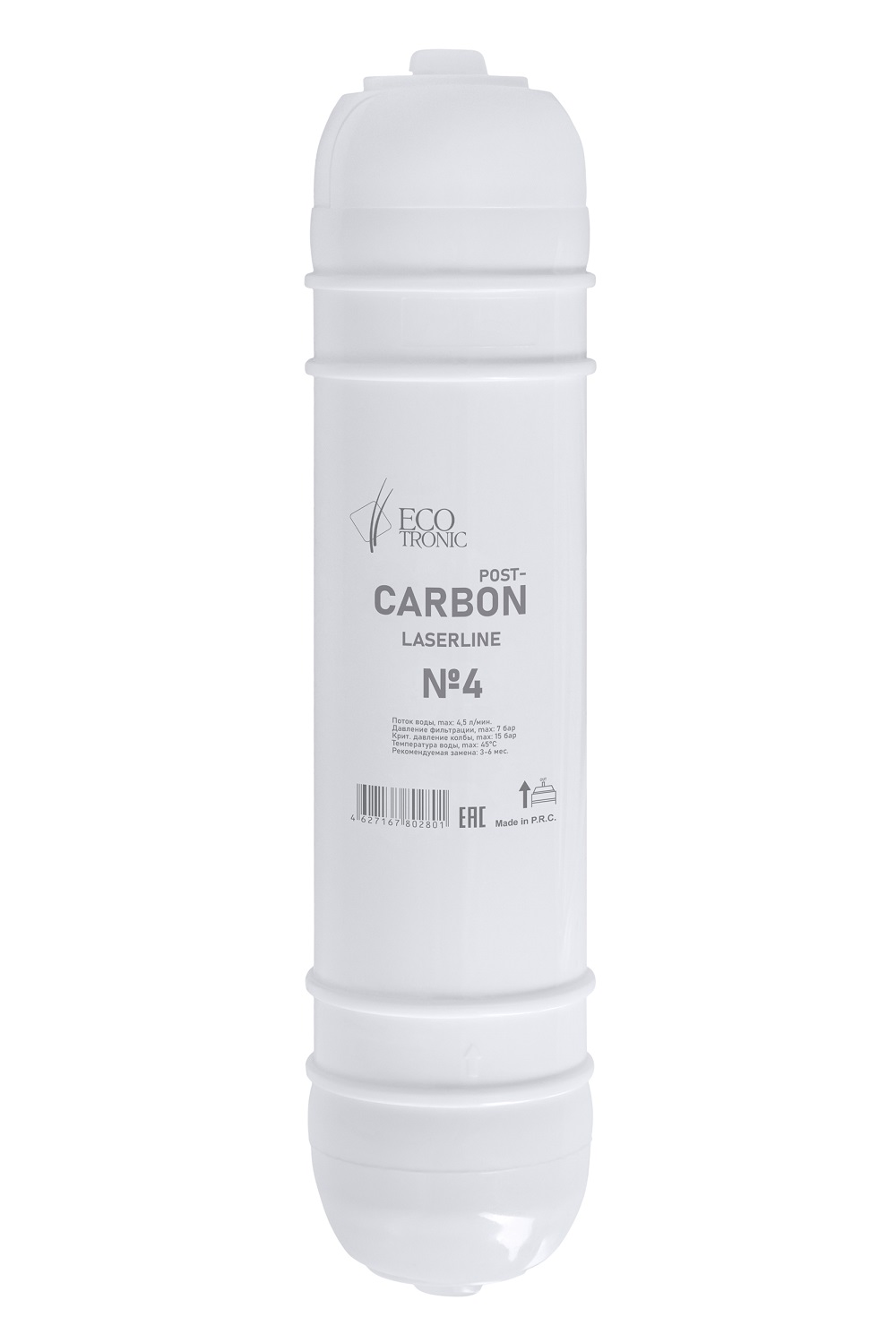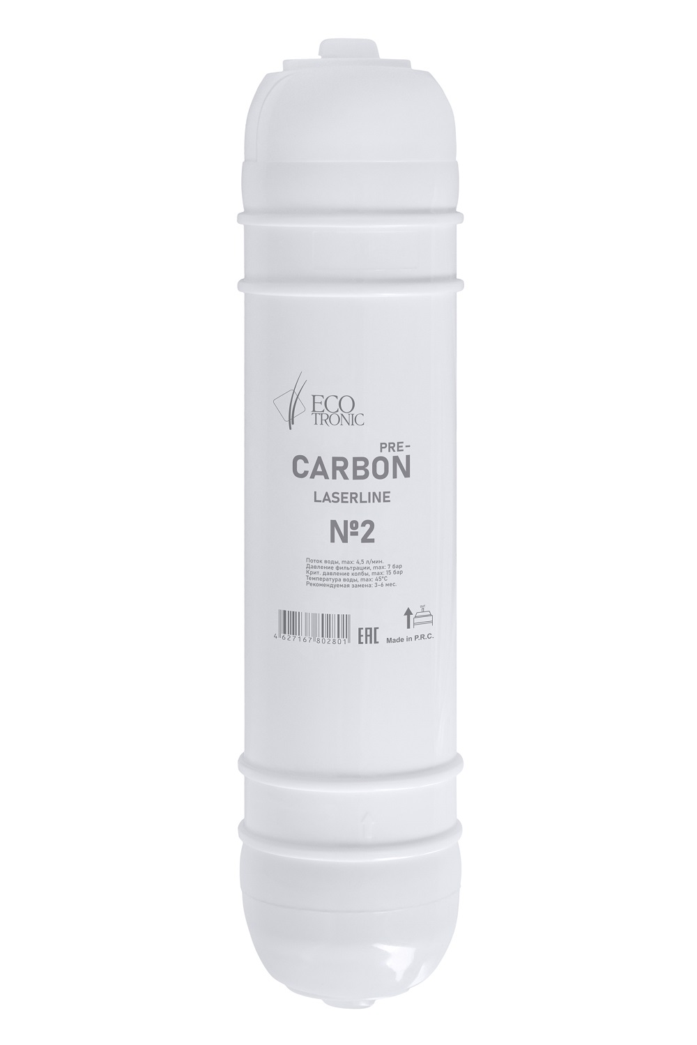 Фильтр Ecotronic Laserline 12″ I-тип Pre-carbon — Угольный фильтр предварительной очистки. Предотвращает гидролиз мембраны и продлевает срок ее использования, удаляет остаточный хлор и органические химикаты, улучшает вкус воды.