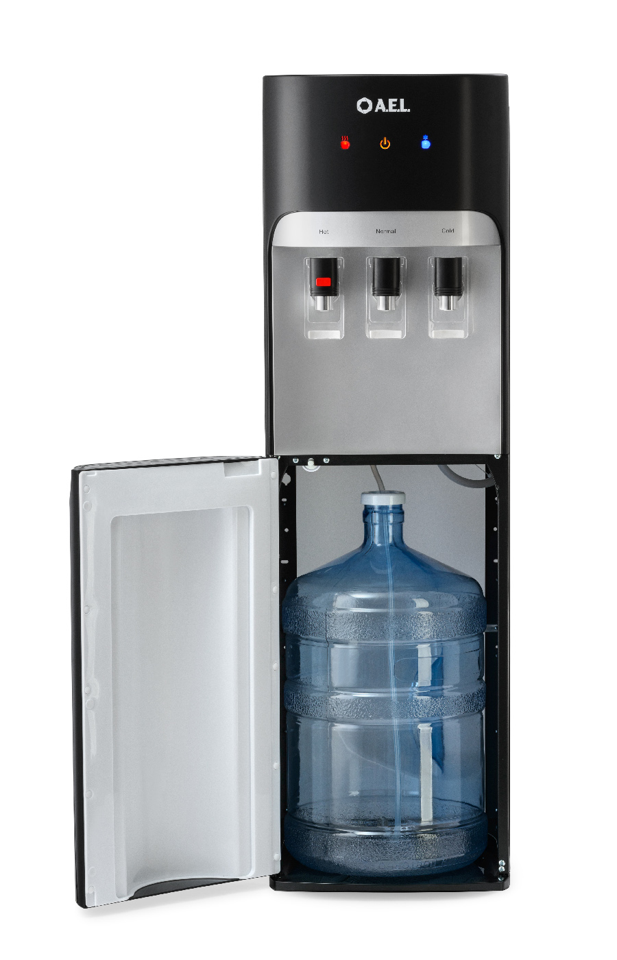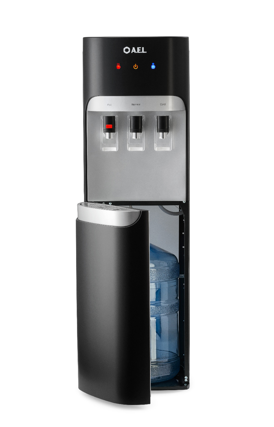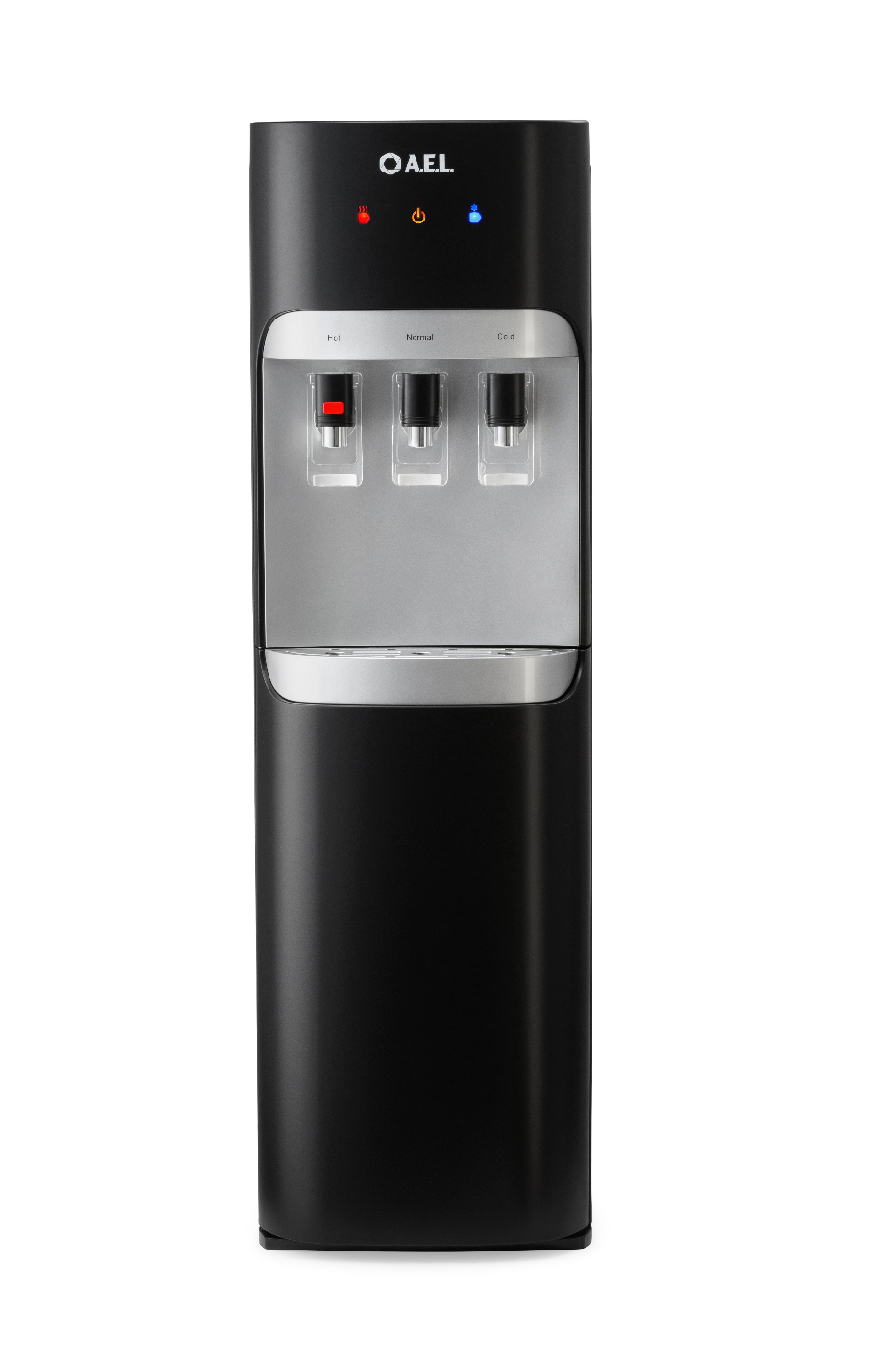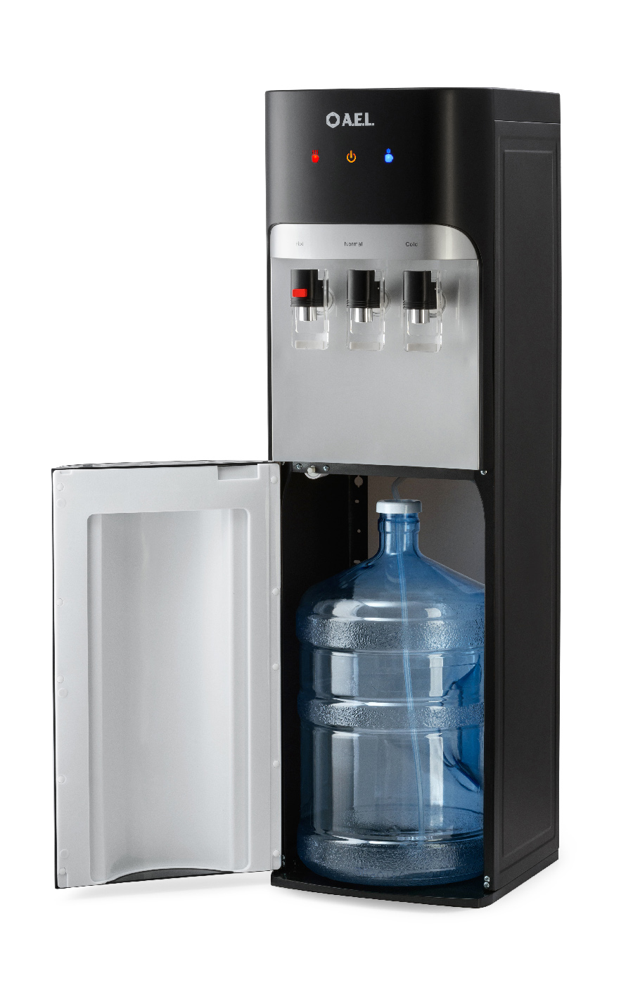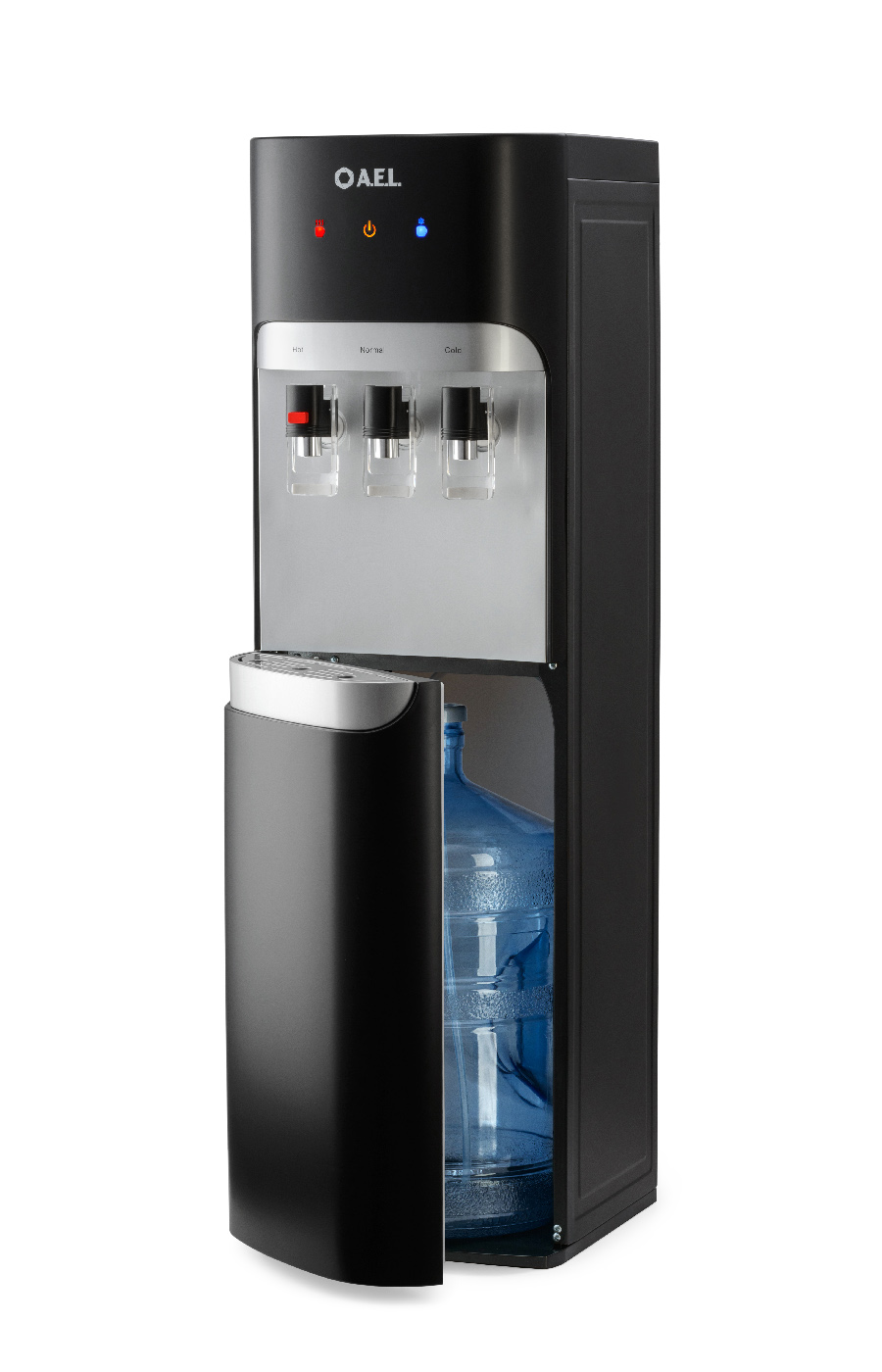 Кулер AEL LD-AEL-808a matte black/silver — это напольный аппарат с нижней загрузкой бутыли, нагревом и электронным охлаждением.