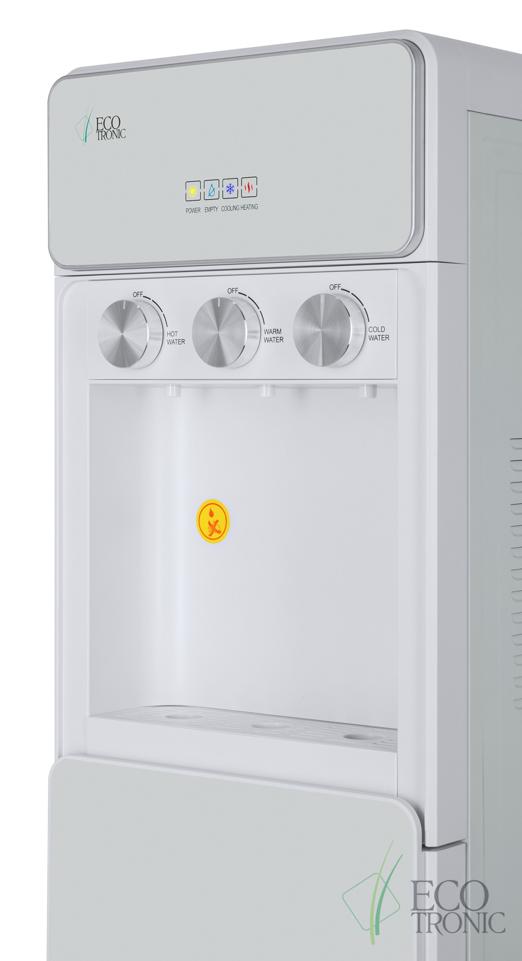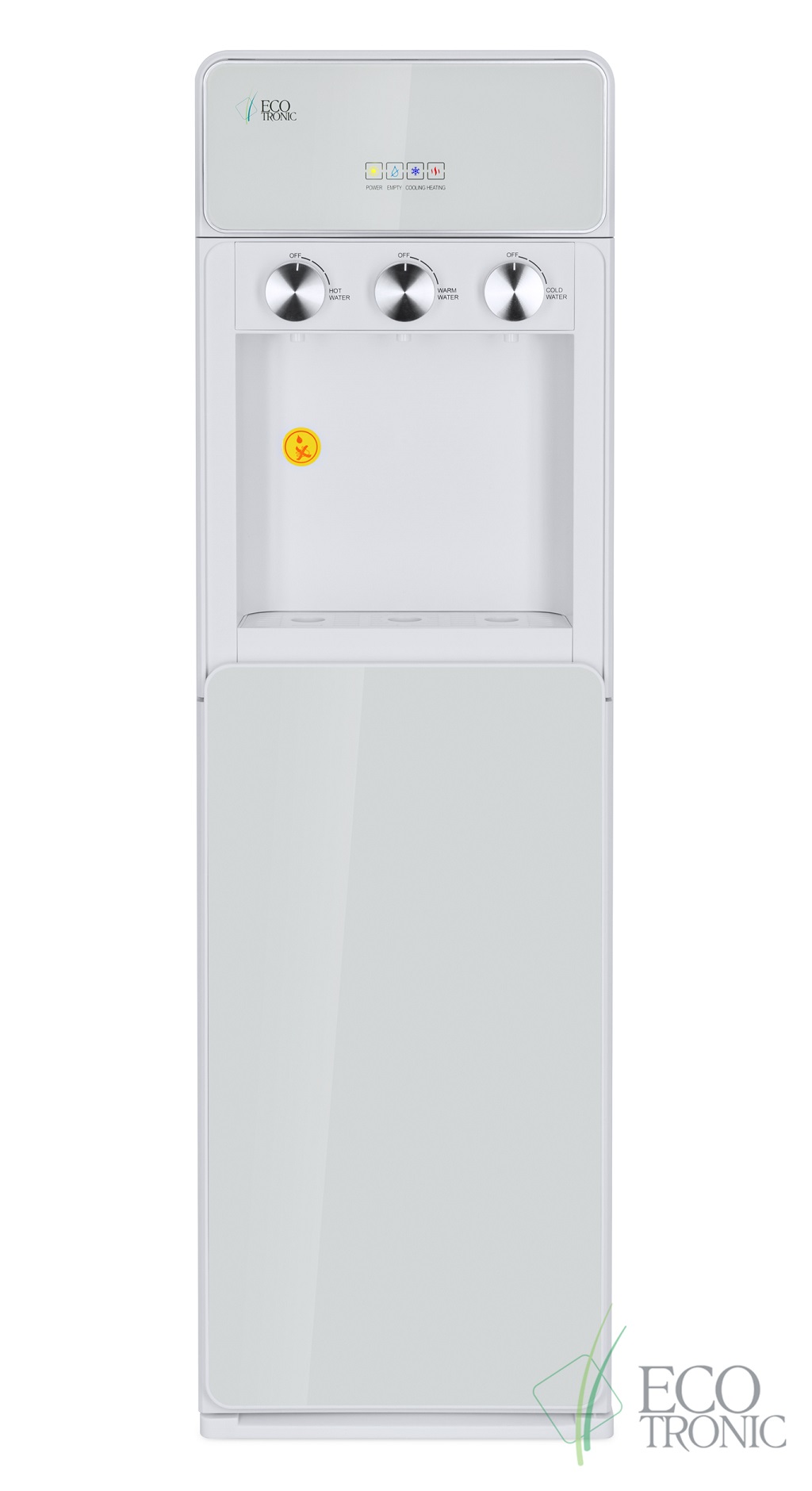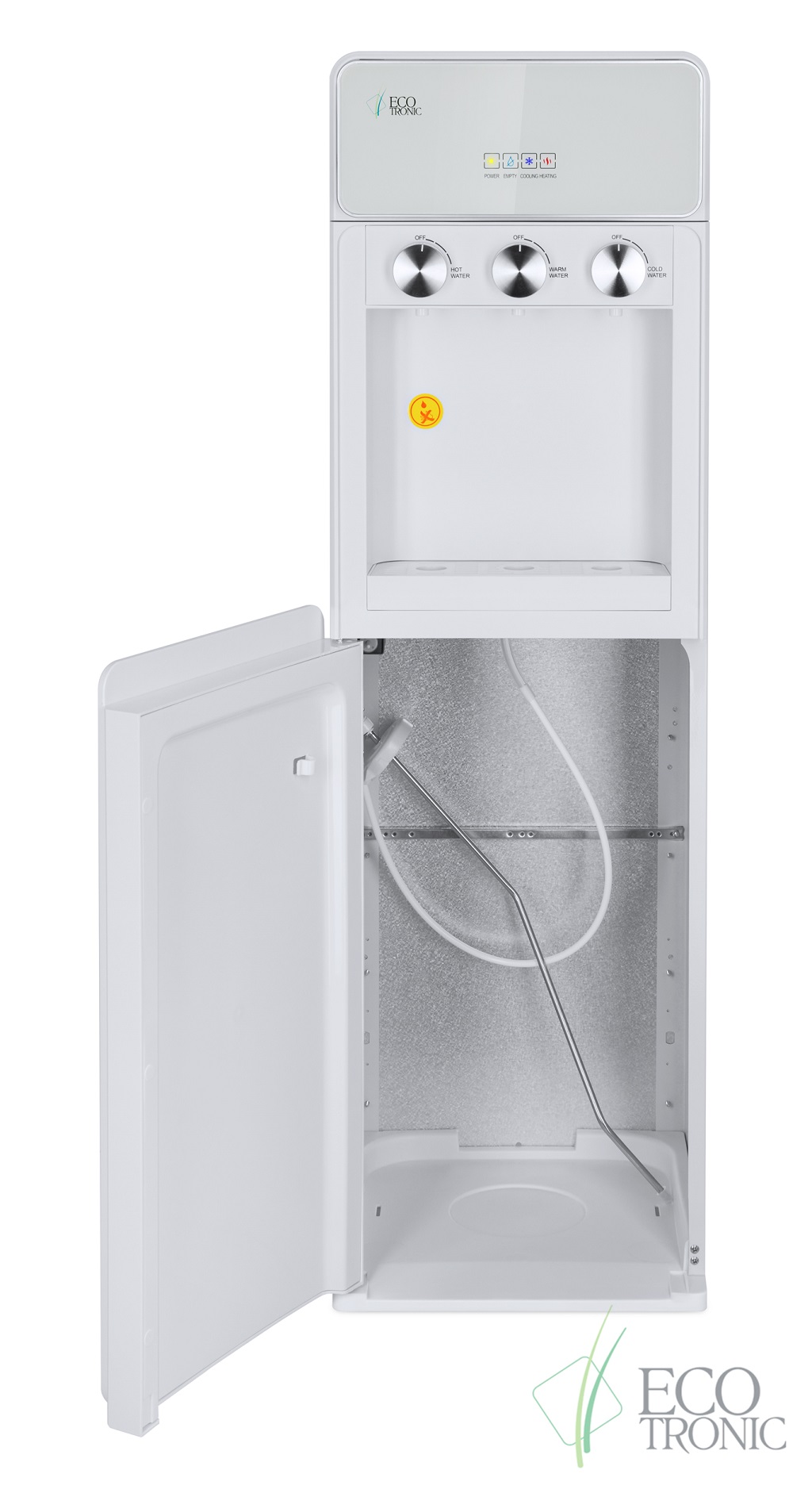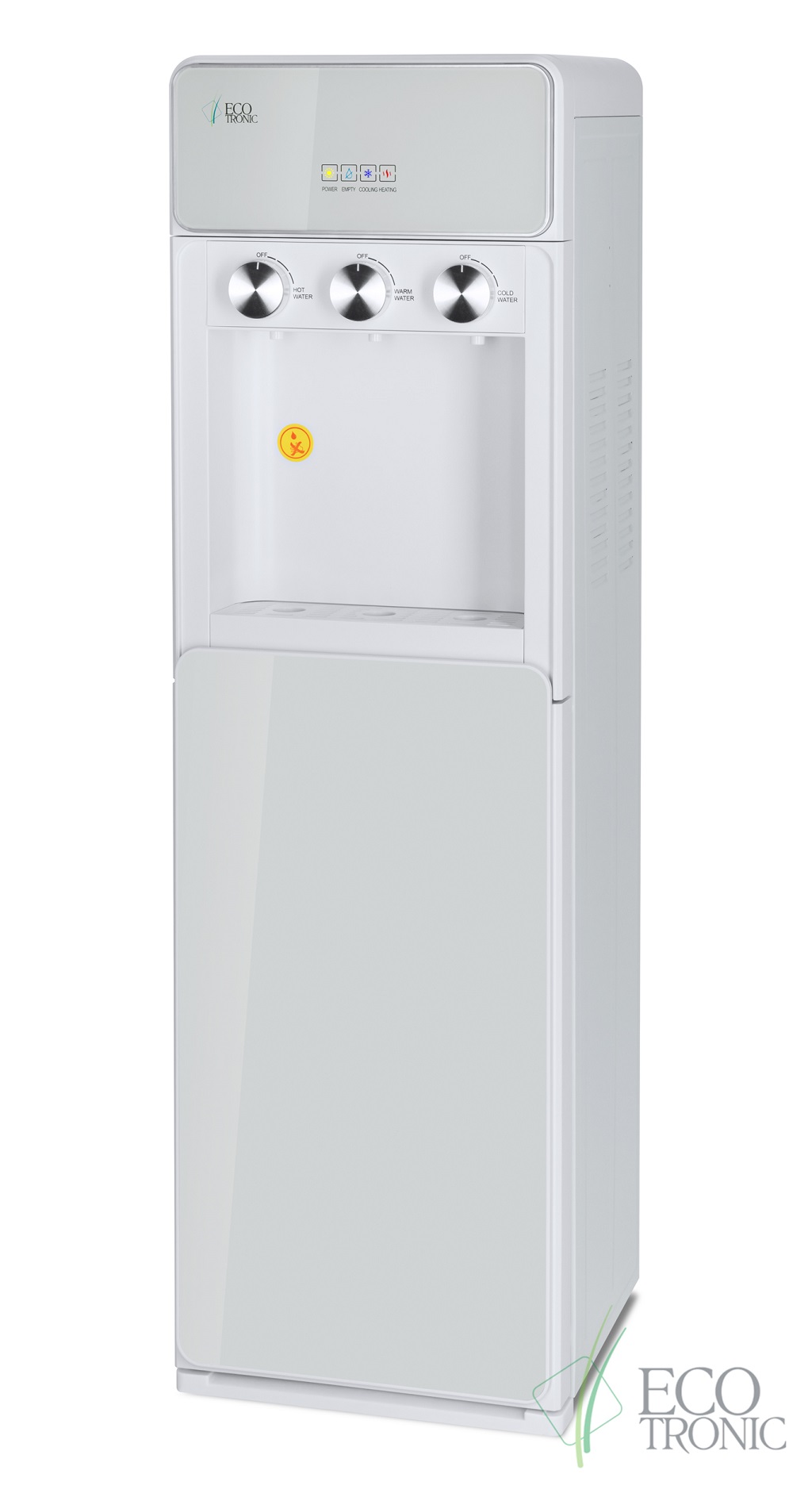 Кулер для воды Ecotronic K42-LXE white — напольная модель с нижней загрузкой бутыли и поворотными кранами подачи воды.