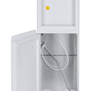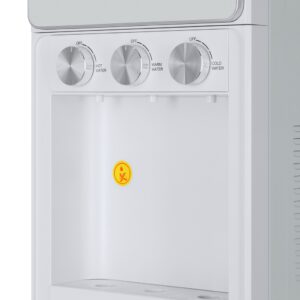 Необычный внешний вид кранов, стильный корпус белого цвета и нижний отсек, в котором полностью скрывается бутыль, позволяют эффектно вписать этот кулер в современный интерьер с продуманным дизайном.