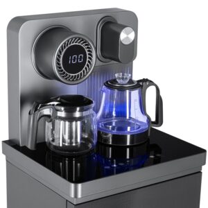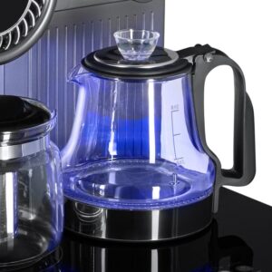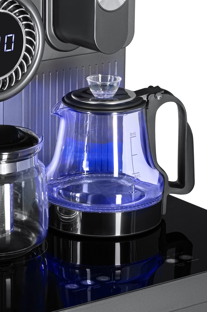 Тиабар Ecotronic TB51-LNR grey — это напольный кулер с чайным столиком без охлаждения, с пультом д/у. Основные функции: нагрев и подача воды комнатной температуры. Нижняя загрузка бутыли. Два чайника — для кипячения и заварочный. Нагрев воды в чайнике до 100°С. Чайник кипячения стеклянный с подсветкой синего цвета. В верхней части шкафчик для хранения. Стеклянная передняя панель.