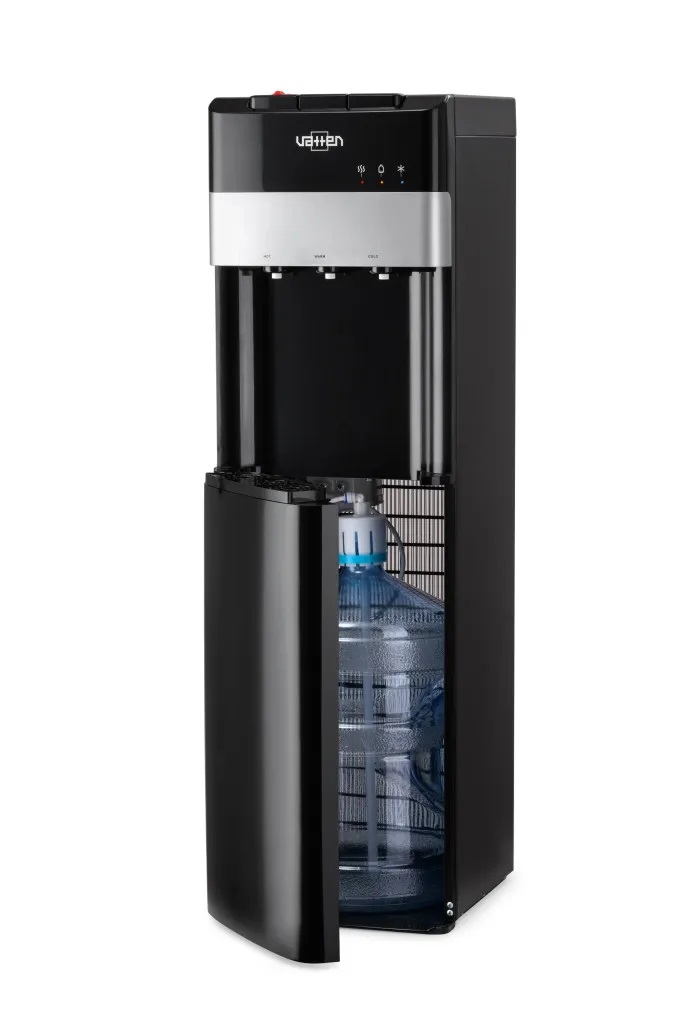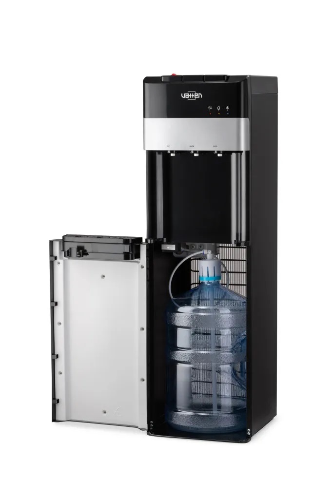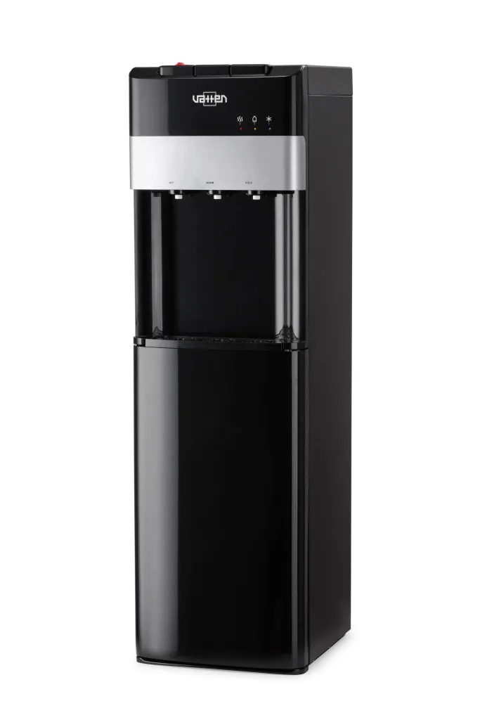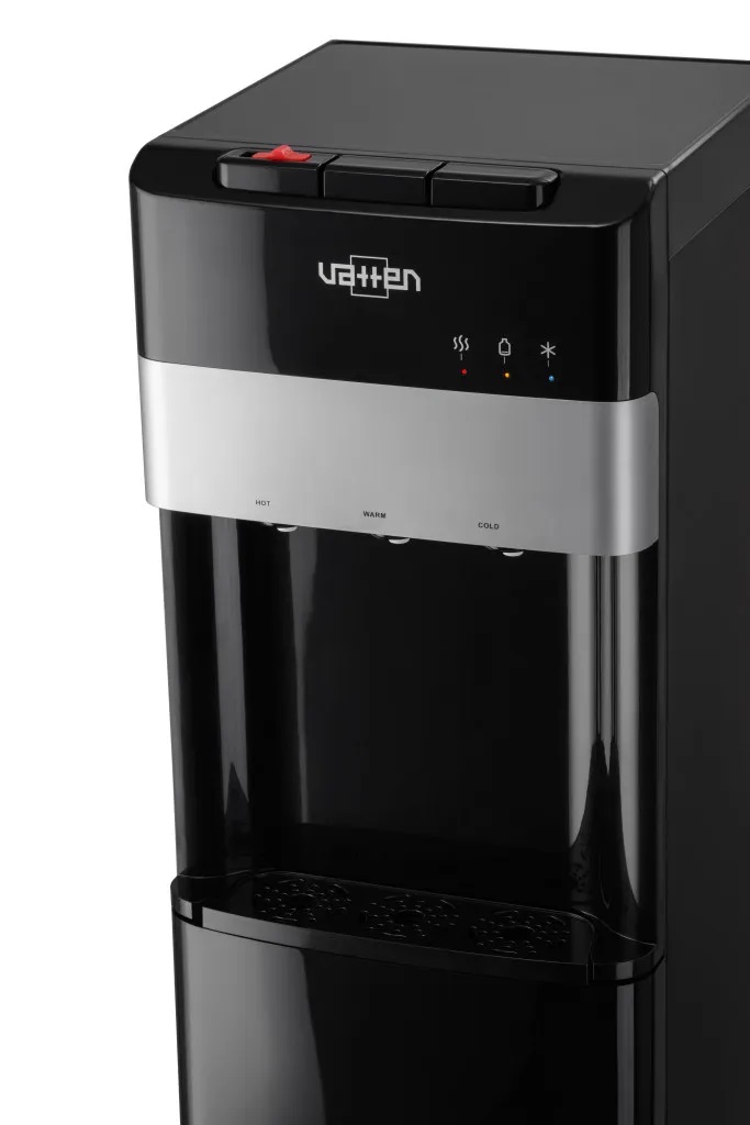 Кулер для воды VATTEN L03NKV — аппарат с нижней загрузкой бутыли, нагревом, компрессорным охлаждением и УФ-лампой для обеззараживания воды.