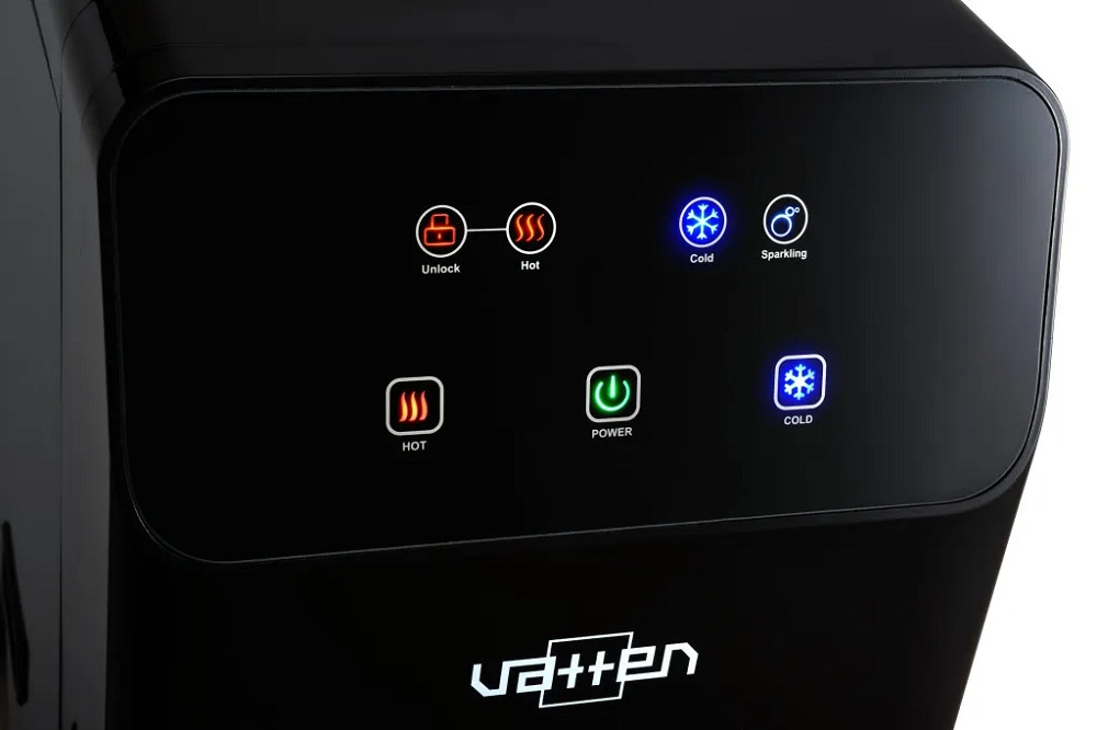 Кулер для воды VATTEN L05NKG с газацией воды — одна из последних новинок в нашем ассортименте. Элегантный чёрный корпус, нагрев и компрессорное охлаждение. Будет уместно смотреться в любом помещении.