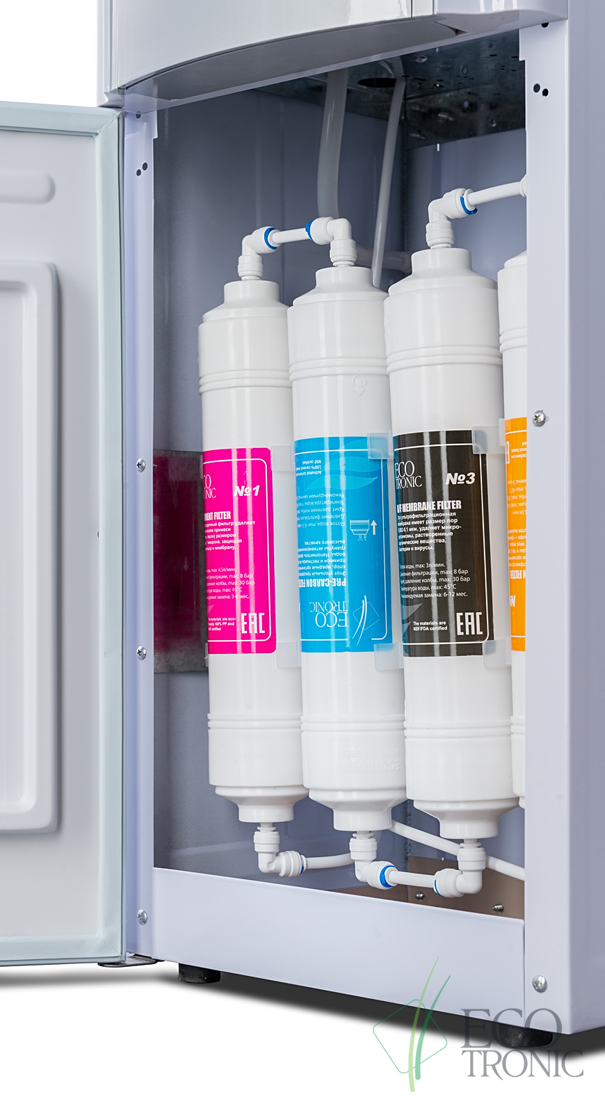 Пурифайер Ecotronic H1-U4LE white-silver — напольный аппарат c электронным охлаждением и 4-х ступенчатой UF-системой очистки воды(ультрафильтрация).